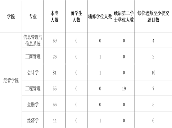 本次题目按各系学生人数来划分最低提交数,各位老师请参考下表提交;提交时在保障所要求的最低题目数量的基础上,可多提交题目,以给学生更多的选择。按教务处要求,原则上每位老师可最多指导10名学生,本届有辅修学位的学生、峨眉第二学士学位学生参加毕业设计(论文)。本届毕业设计(论文)工作需全体专任教师参与,如有特殊情况无法承担该项工作的,须报日韩无码