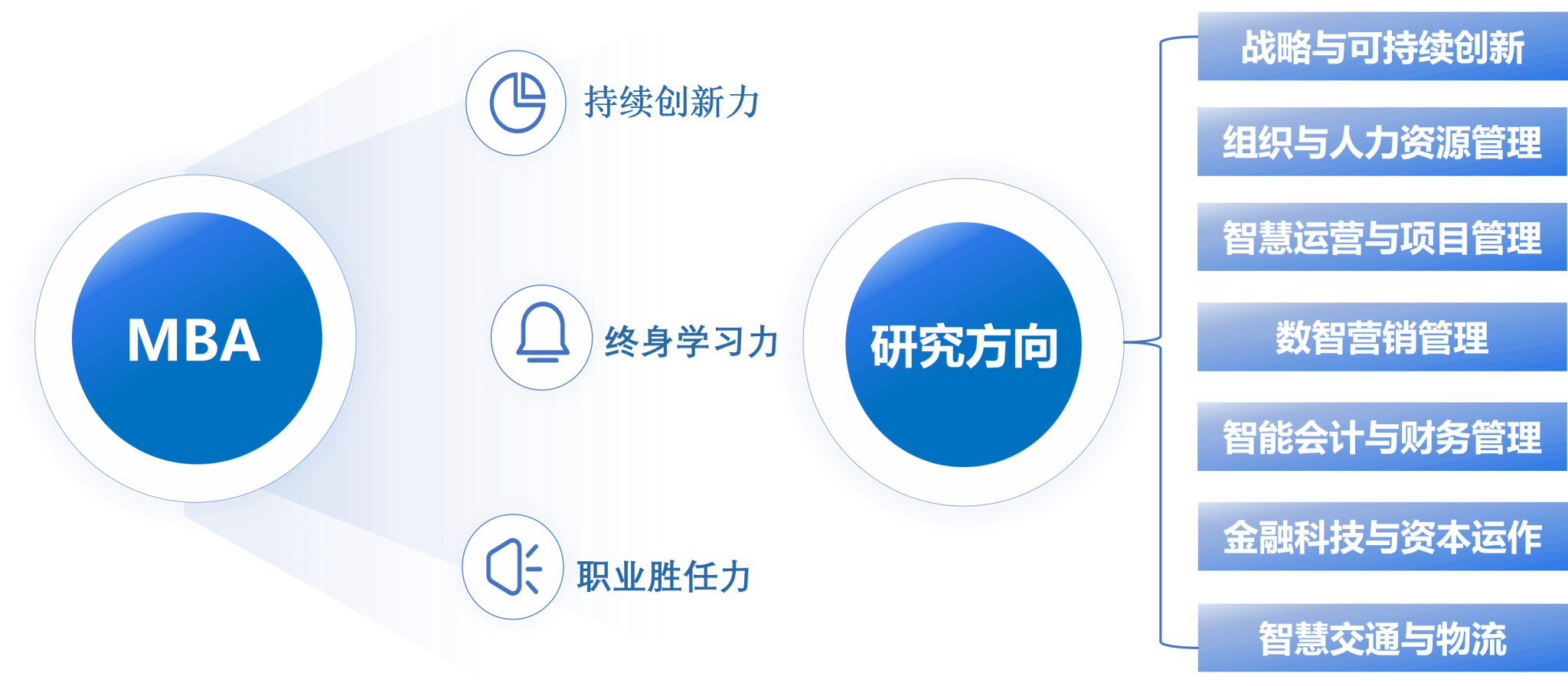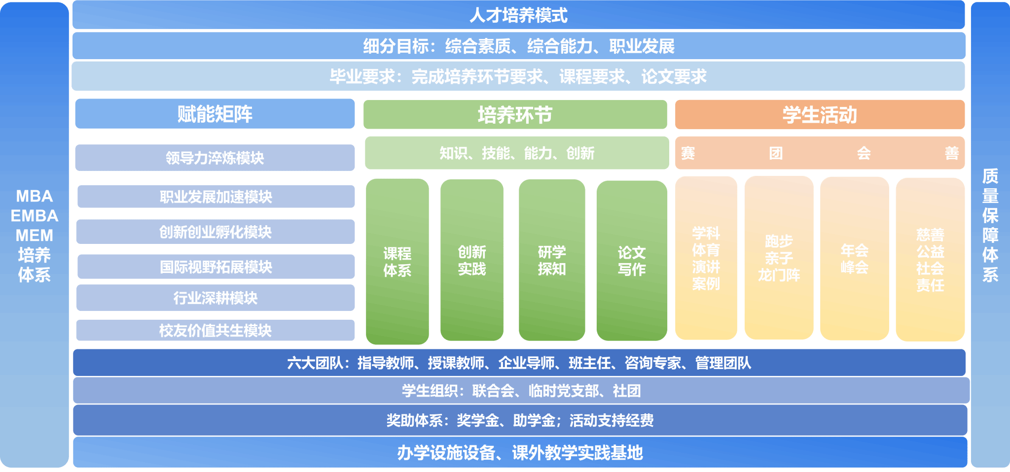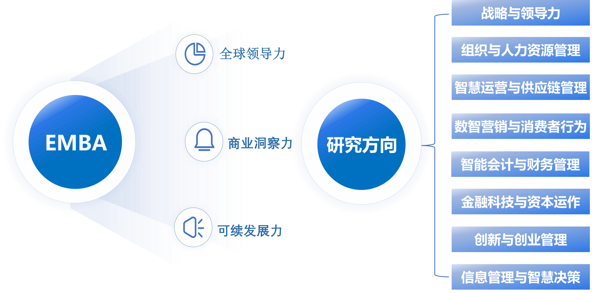 专业硕士项目(MBA、EMBA、MEM)课程体系紧贴国家发展战略与行业前沿,聚焦管理理论与实践融合,分层次、模块化打造高水平人才培养体系。