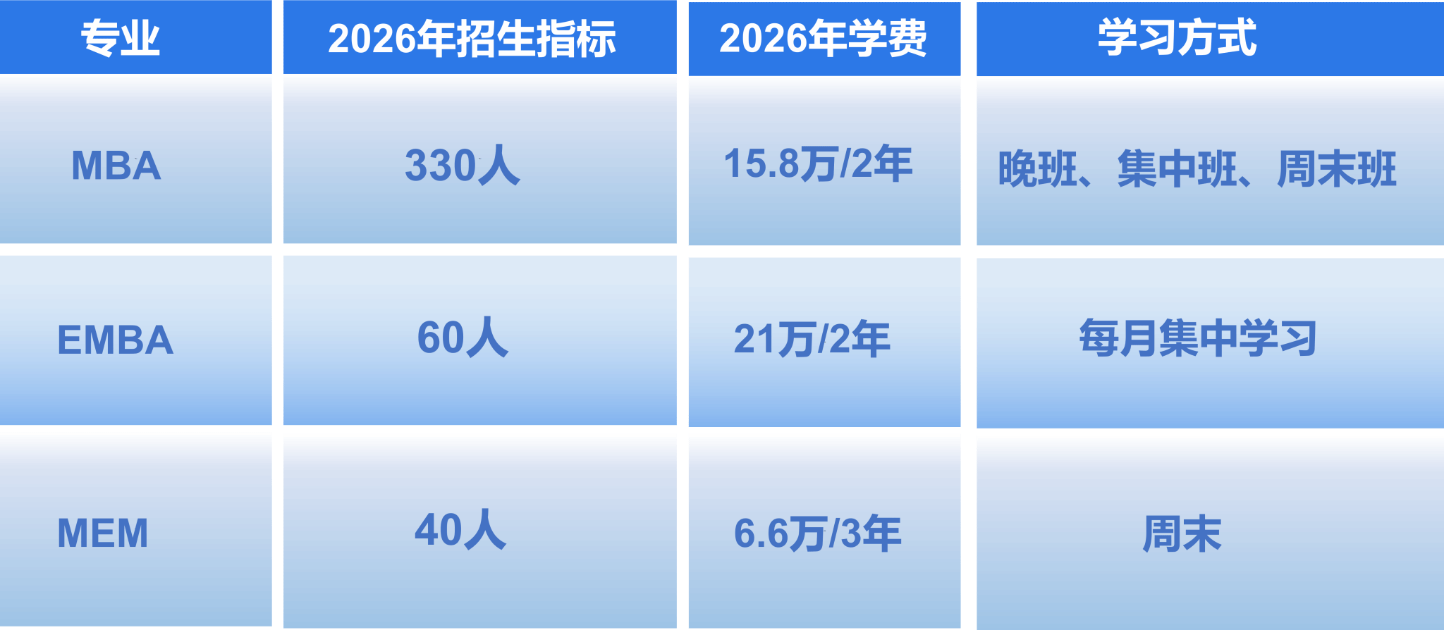 MEM: 基本学制3年,学习年限3-5年。